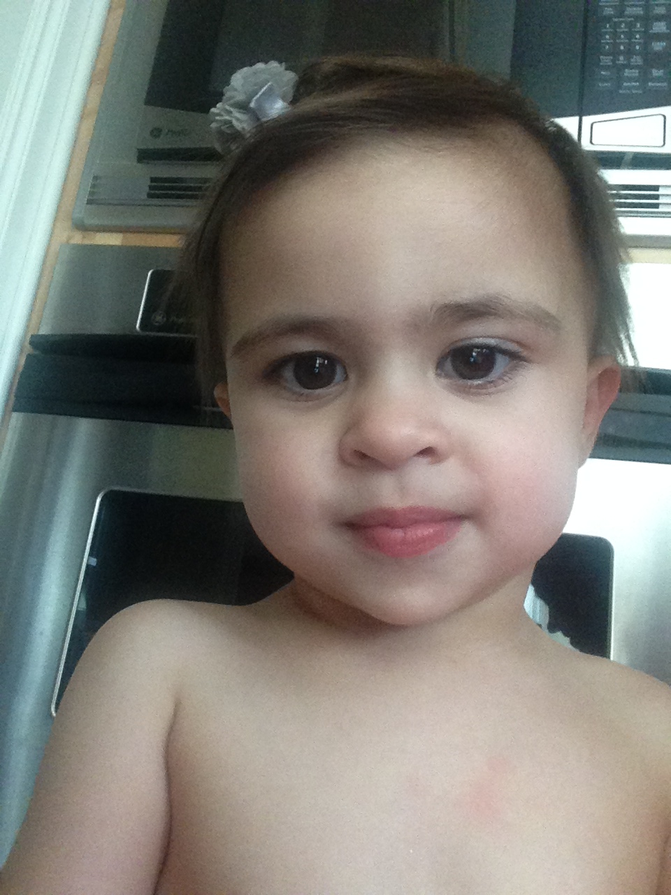 And see my 17-month old taking her first half-naked selfie…with MY phone!